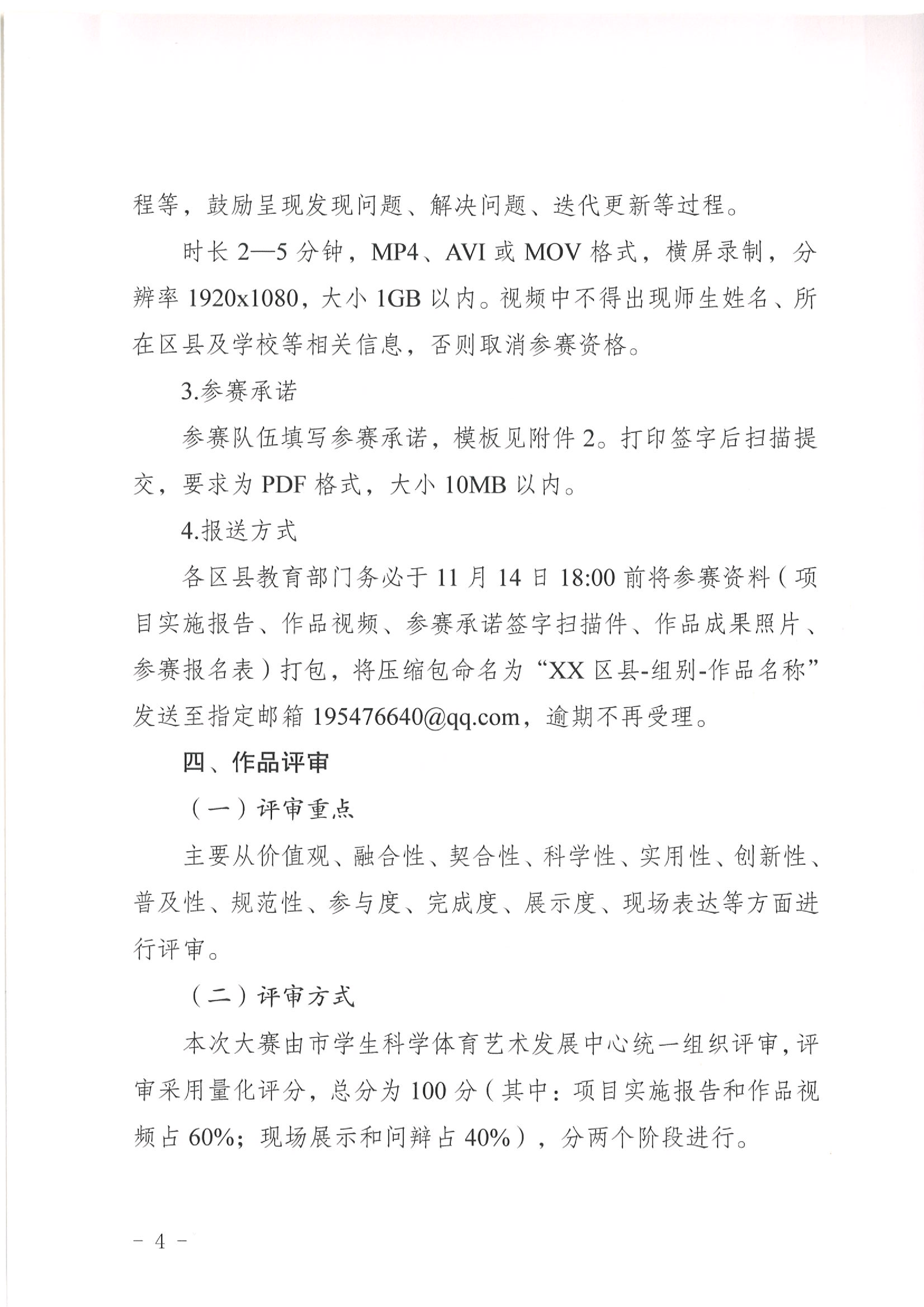 (三)请各区县负责此项工作的同志加入工作群(渝快政群号:1844951939),大赛方案及市级决赛事宜由市学生科学体育艺术发展中心另文下发。
